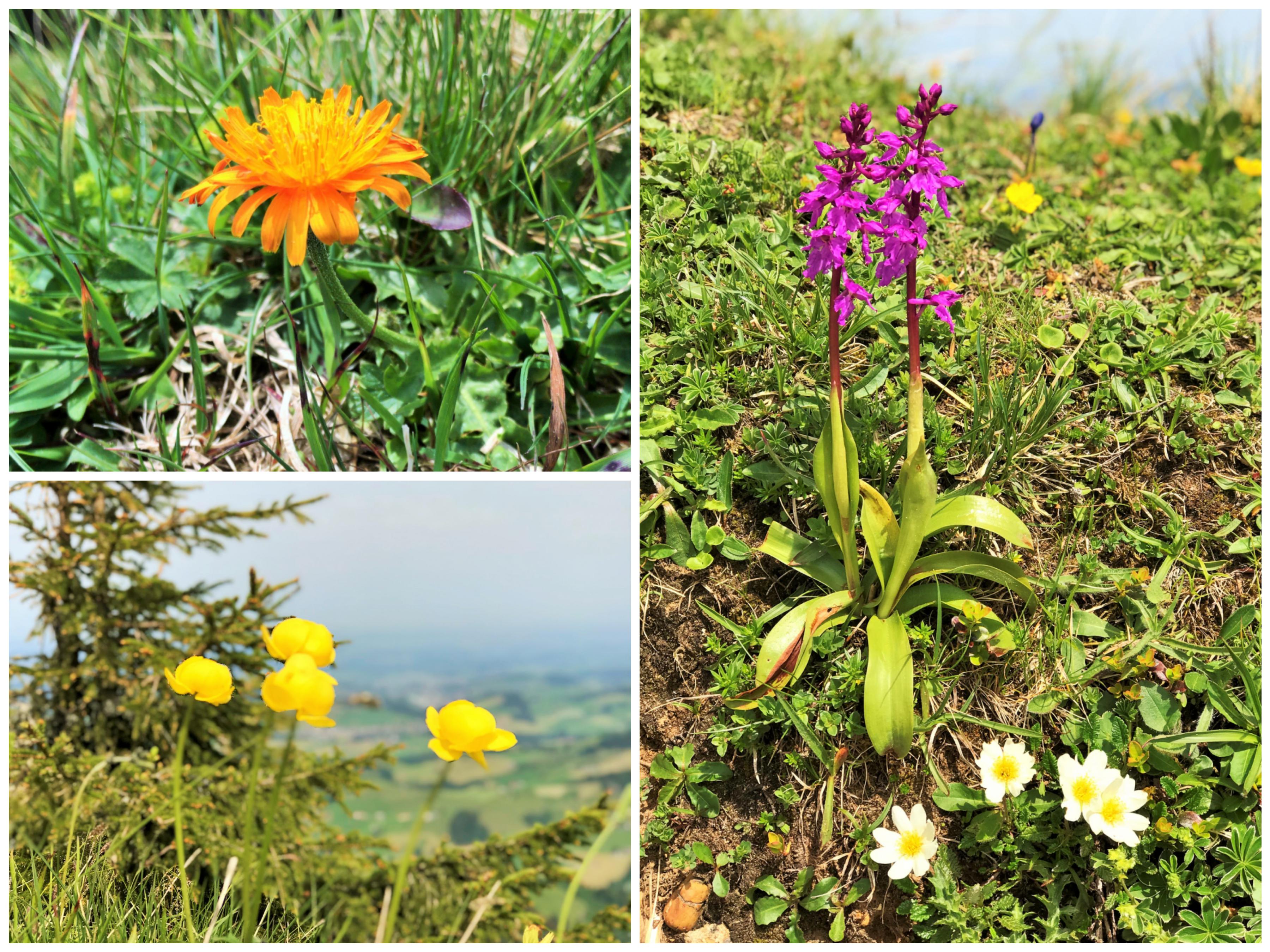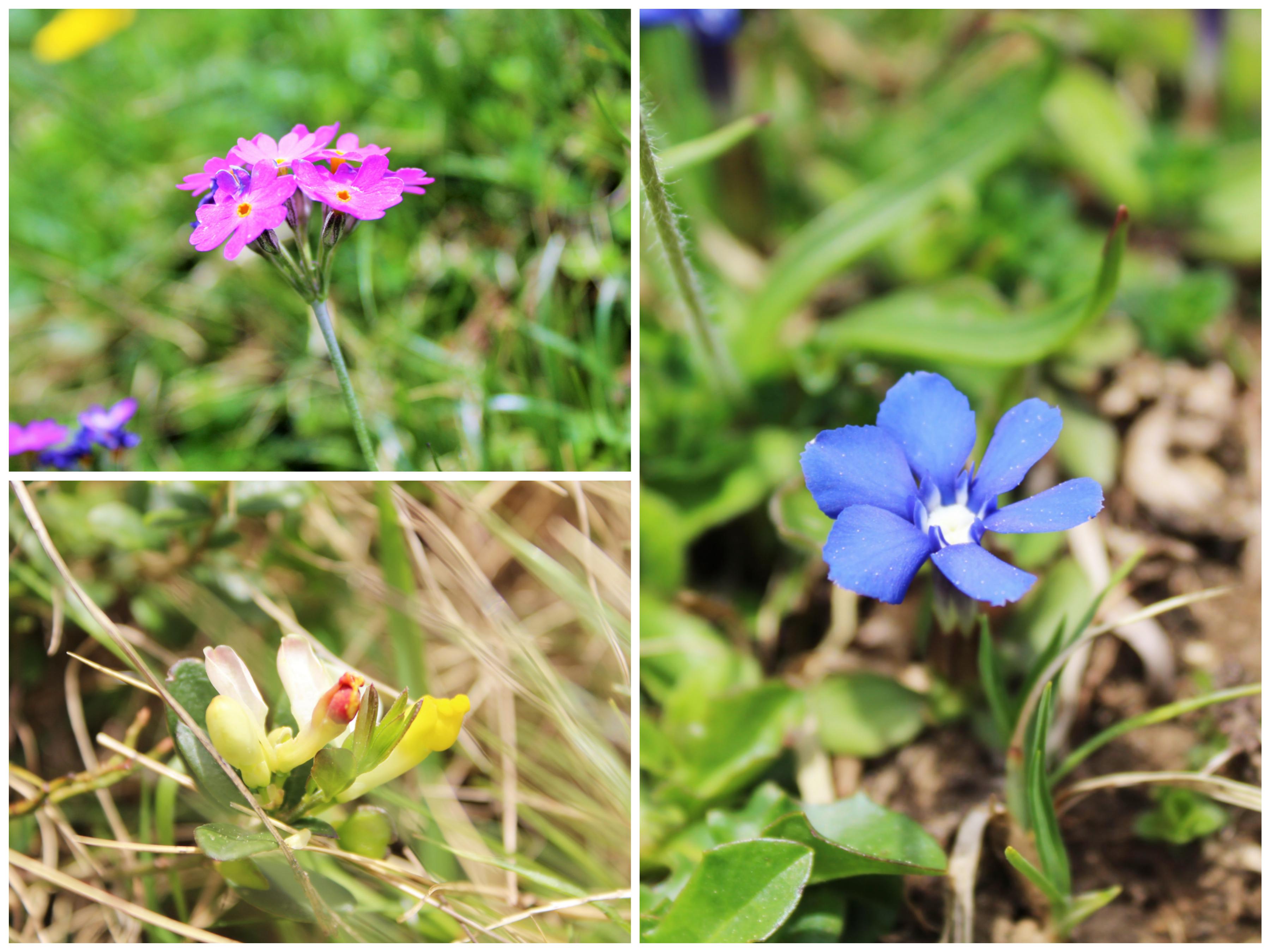 Gelb, weiss, blau, violett – die Bergblumen blühen derzeit in allen Farben! Wo man hinschaut, entdeckt man neue Arten, wie zum Beispiel: das weiss-gelbe Alpenfettblatt, die lila Mehlprimel, das violette Manns-Knabenkraut, der gelbe Berg-Hahnenfuss, die weisse Buchsblättrige Kreuzblume oder aber – das Highlight schlechthin – der blaue Enzian!